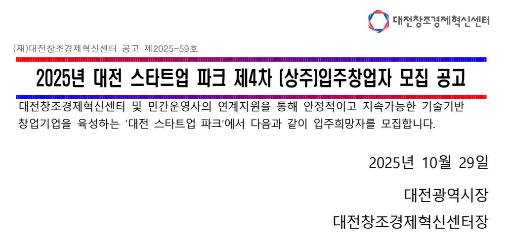 2025년 대전 스타트업 파크 제4차 (상주)입주창업자 모집 공고